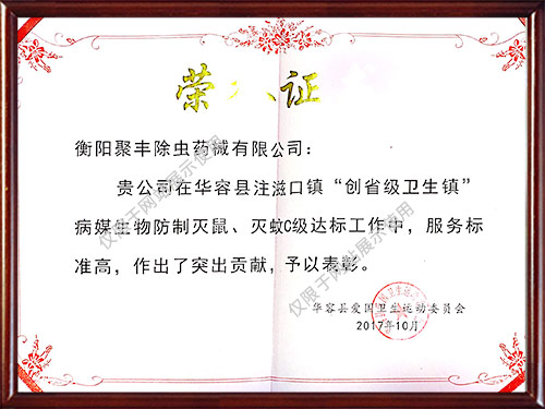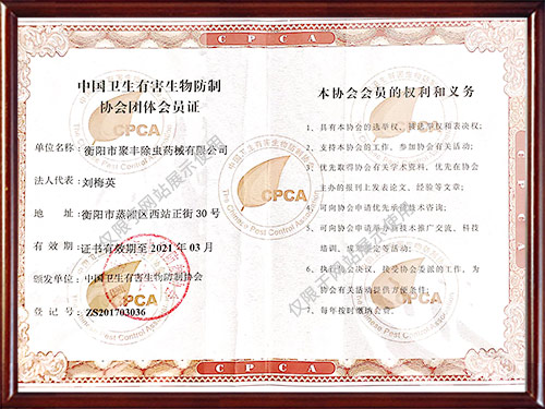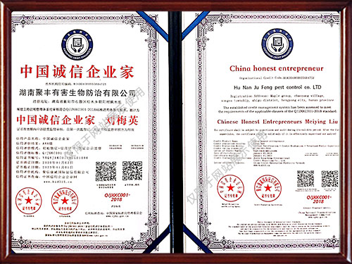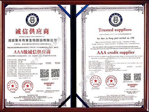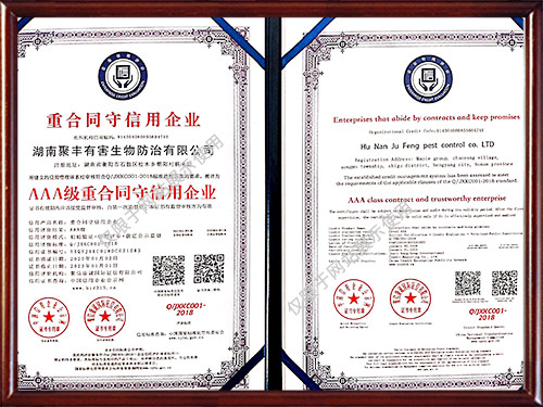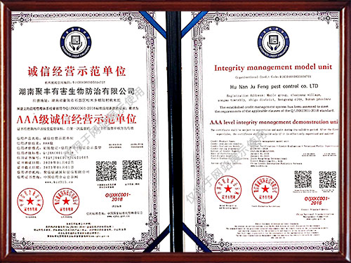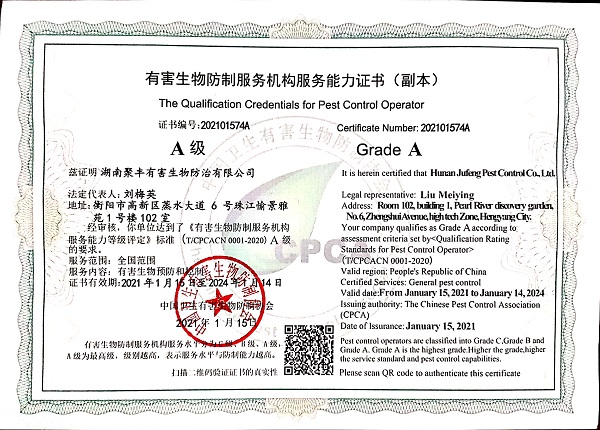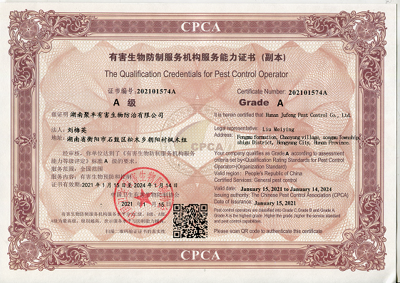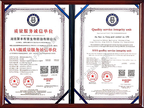 公司曾獲得多種榮譽資質證書,所有施工人員經過專業培訓且經過國家相關部門考核認證,能夠為廣大客戶提供一流的除蟲技術服務,為保障客戶擁有一個健康、清潔、安全、舒適的工作和生活環境提供了保障。